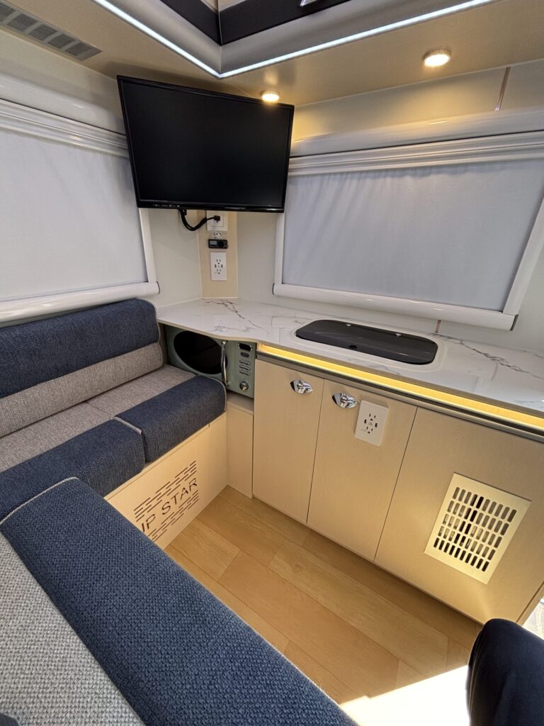 シンク付きで、簡単な調理や手洗いもOK。